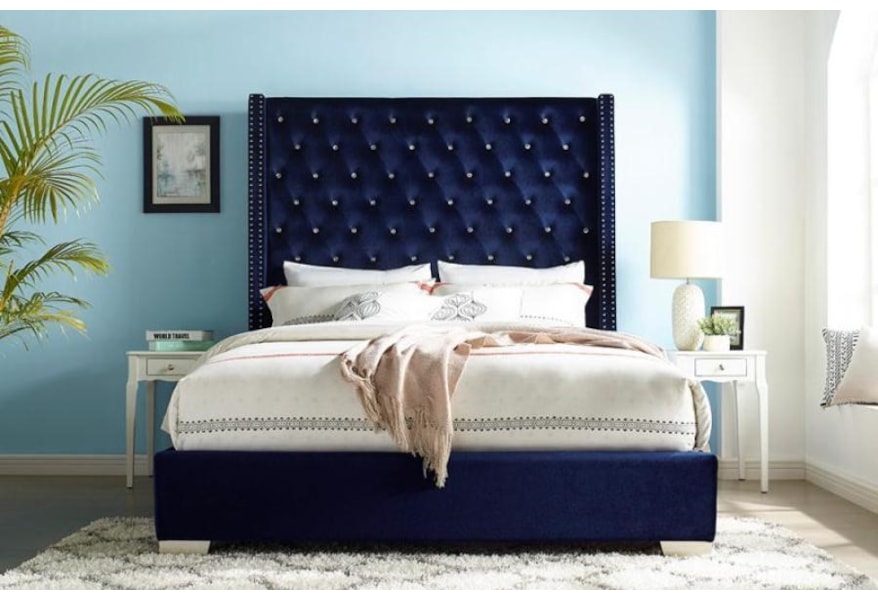 Homelegance Sh228blu Blue Queen Velvet Upholstered Bed Dream Home Interiors Upholstered Beds